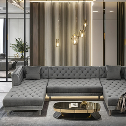 Divano trapuntato da soggiorno modulare personalizzato 3 2 1 telaio inossidabile con velluto e tessuto per casa appartamento o Hotel
